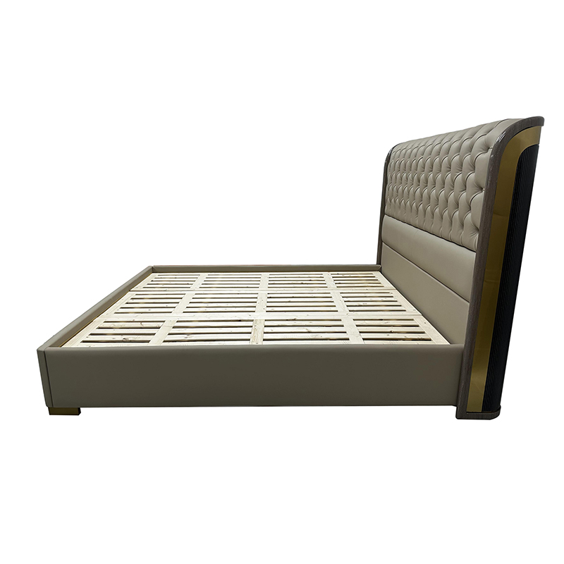 The Opulent Italian Upholstered Luxury Sleep Bed, with its tufted headboard and premium fabrics, becomes the luxurious centerpiece of your bedroom, blending timeless Italian elegance and plush comfort for a truly indulgent nightly retreat.